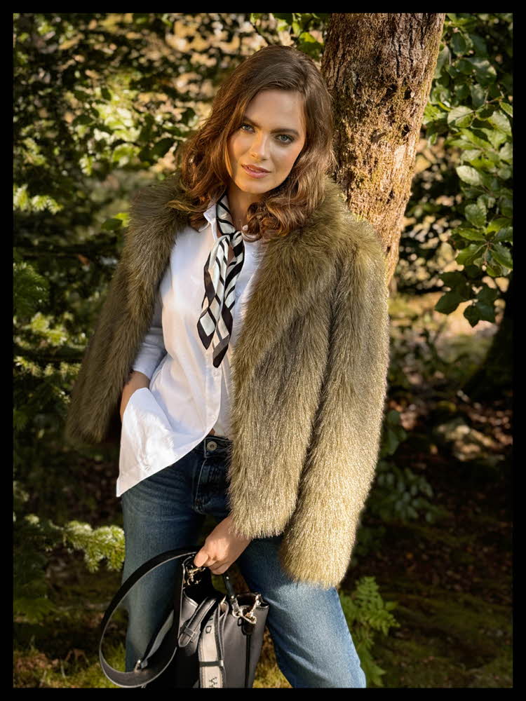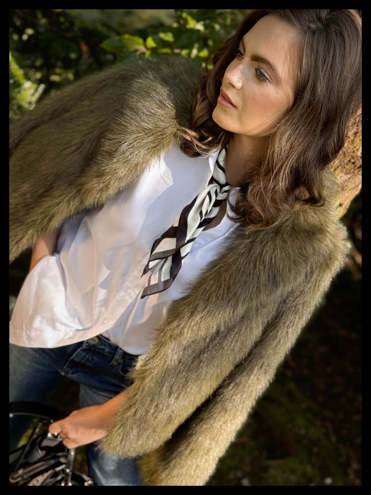 En pelsjakke trenger ikke bare være for pyntete anledninger – bruk den gjerne til jeans og en hvit skjorte for en avslappet, men sofistikert hverdagsstil.