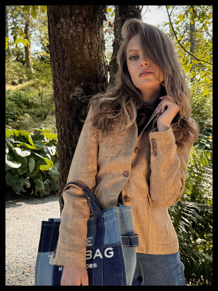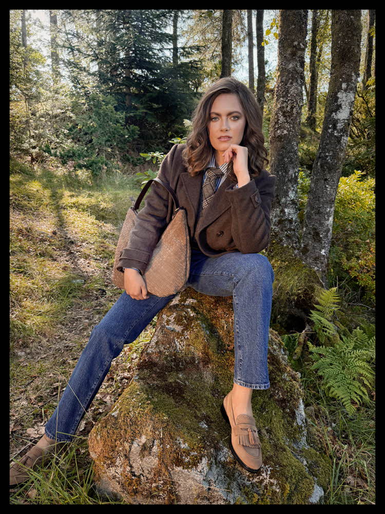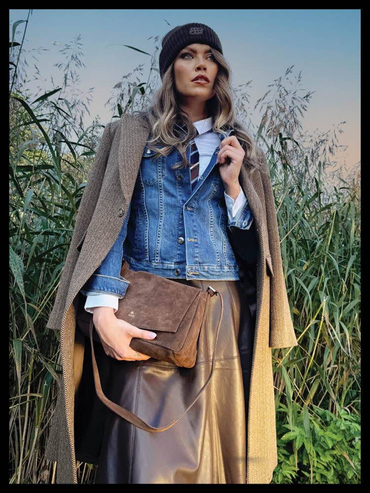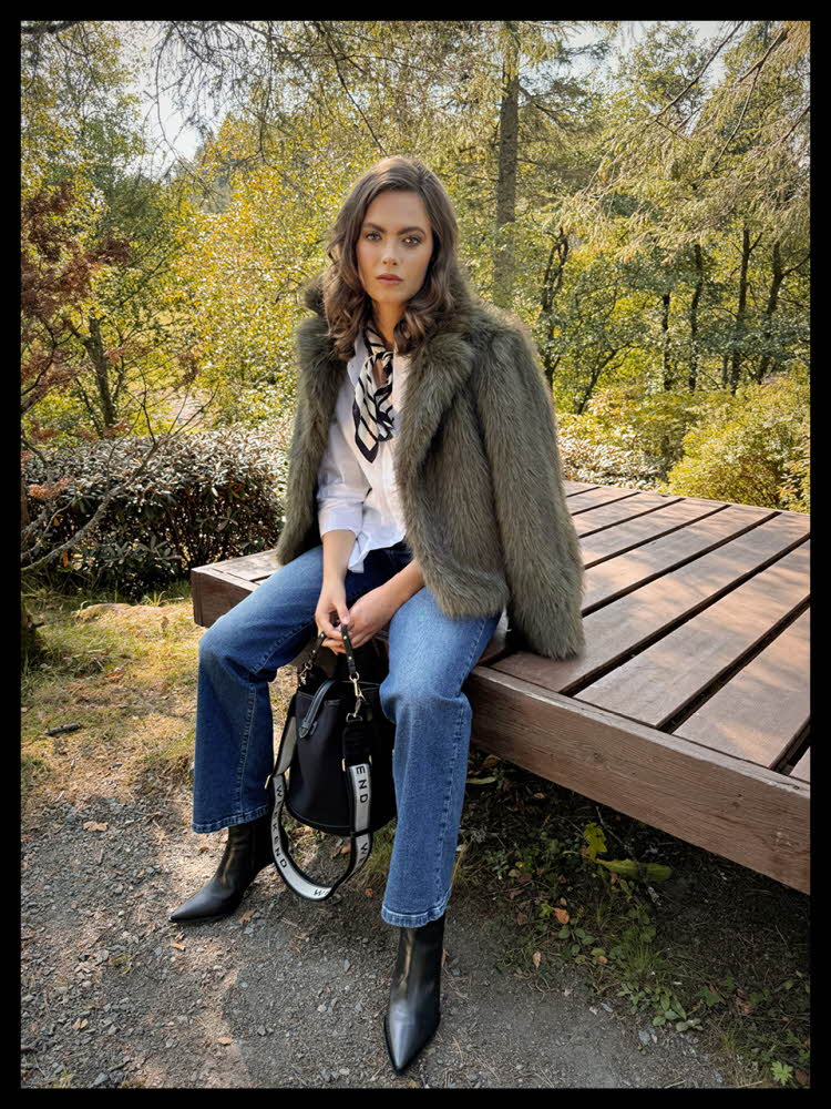 Jakke, Rockandblue 3199,- Boutique No6 // Skjorte, Leveté 999,- Emilie // Jeans, Denim Studio 1999,- Boutique No6 // Sjal, Sneaky Fox 549,- Emilie // Veske, Max Mara 4099,- Emilie // Støvletter, Billi Bi 3499,- Shoe Gallery