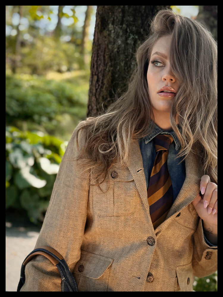 Jakke, Ralph Lauren 6099,- Stil // Skjorte, Ralph Lauren 2399,- Stil // Jeans 599,- Lindex // Slips, Eton 1299,- Volt // Veske, Marc Jacobs 4799,- Stil