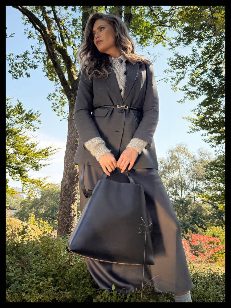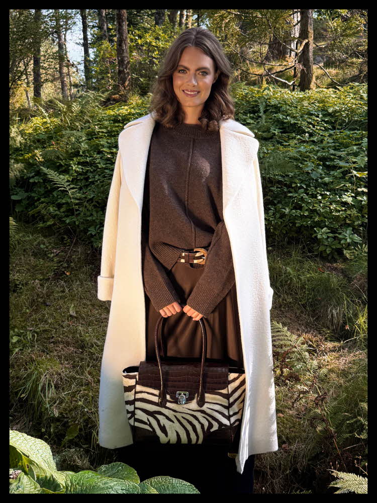Kåpe, The Product 8000,- Infinity // Genser, Arnie Says 2000,- Infinity // Skjørt, Rah Oslo 1499,- Moe // Belte, Ralph Lauren 1599,- Stil // Veske, Ralph Lauren 6499,- Stil