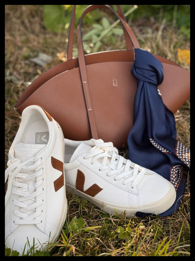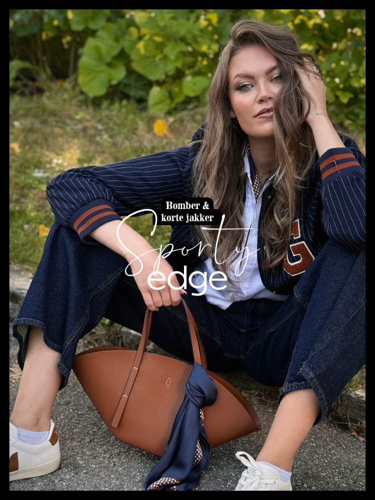 Jakke 4900,- Gant Store // Skjorte, Leveté 999,- Emilie // Jeans, Donna 1199,- Vic // Sjal 200,- Selected // Veske 399,95 Gina Tricot // Sjal på veske 200,- Selected // Sneakers, Veja 1700,- Shoe Gallery