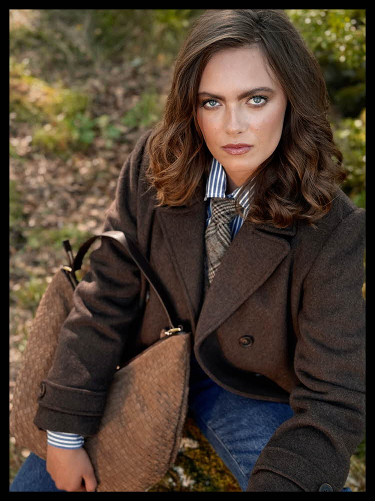 Kåpe, Ralph Lauren 9595,- Stil // Dongerijakke, Freequent 799,95 Floyd // Skjorte 699,95 Selected // Skjørt 499,95 Gina Tricot // Lue, Munthe 599,- Deguy // Slips, These Glory Days 499,- Volt // Veske, Adax 2999,- Bagorama // Støvletter, Billi Bi 3199,- Shoe Gallery