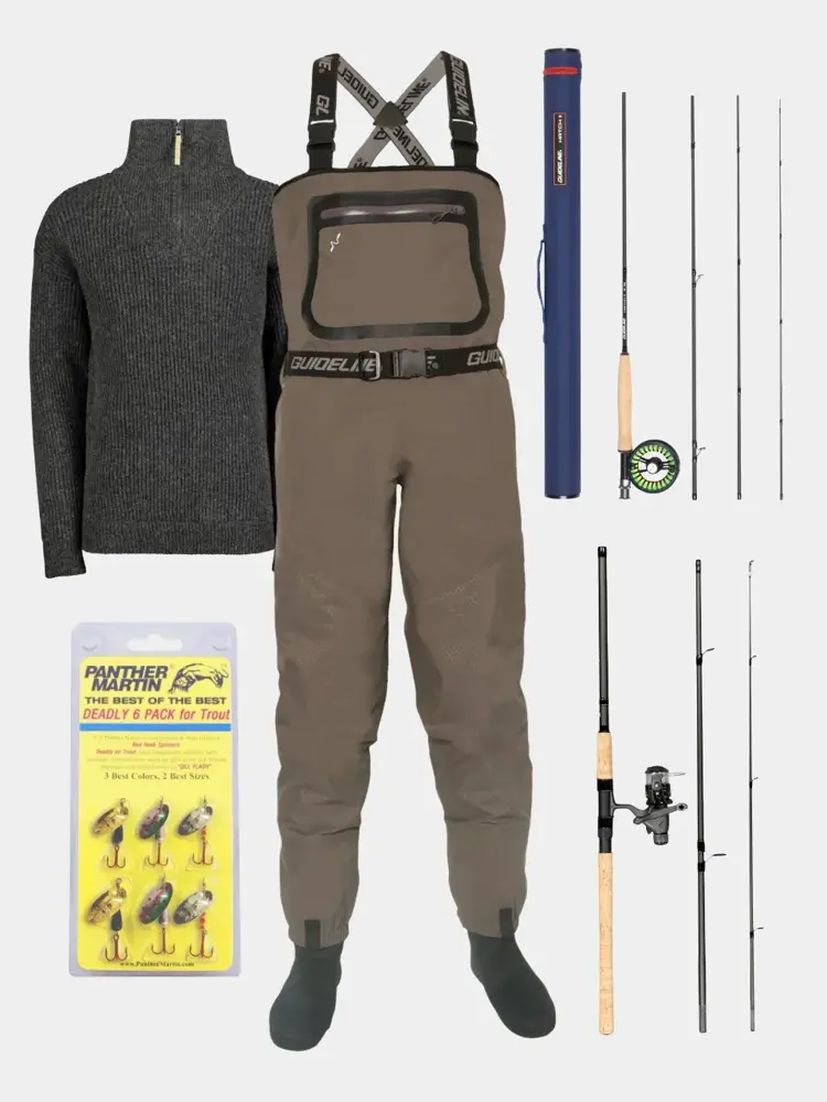 Kjøper du et nybegynnersett får du stang, snelle og snøre i ett. Dette finner du hos våre sportsbutikker. Det finnes også nybegynnersett som passer til fisking i både sjø og ferskvann. Spør gjerne betjeningen hvilket sett du bør kjøpe i henhold til hvor du har tenkt å fiske
