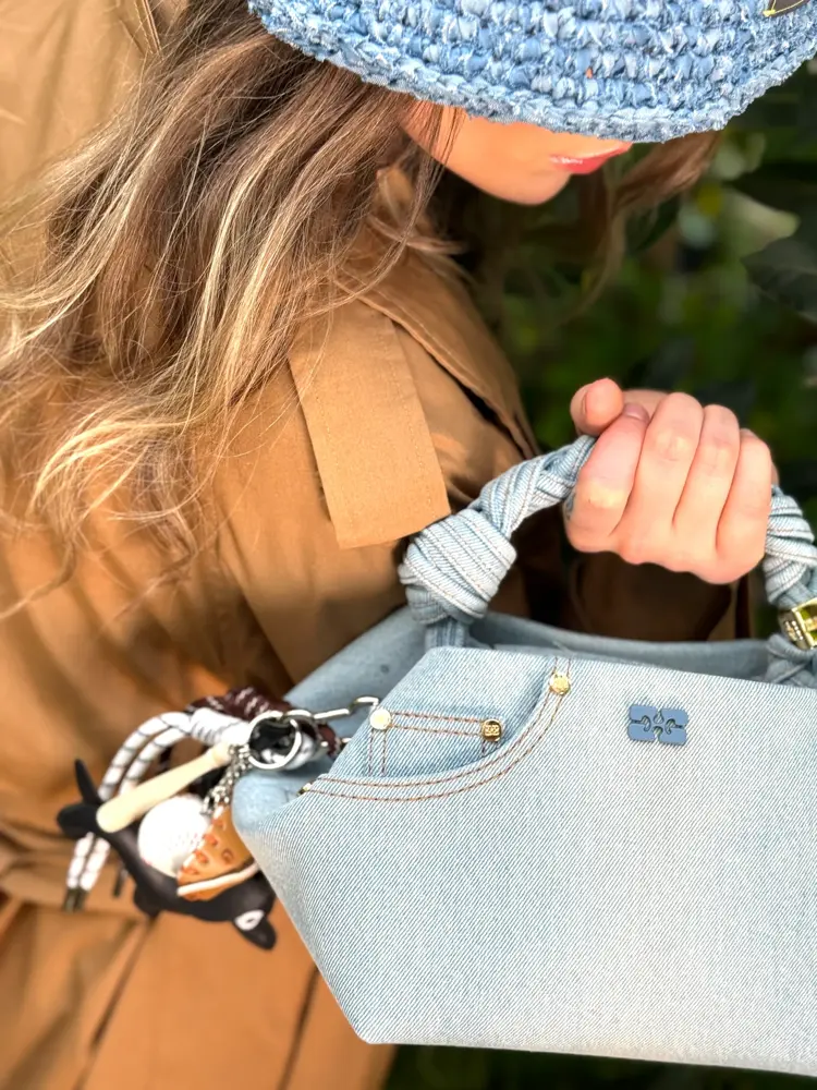En håndveske i denimstoff er både tidløs og trendy, perfekt for den som ønsker et robust, men samtidig avslappet tilbehør. Det slitesterke materialet gjør vesken ideell for daglig bruk, samtidig som den tilfører et kult og casual uttrykk til sommerantrekket.