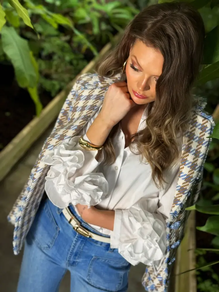 Blazer, Idalina 6999,- Stil // Skjorte, Carla F 1399,- Emil // Jeans 999,95 Floyd // Smykker Match // Belte 1499,- Deguy
