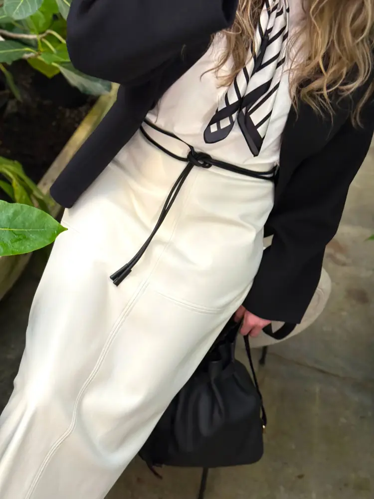 Skinnskjørt fungerer like godt med en enkel t-skjorte til hverdags, som med en fin bluse til fest, og det gir alltid et kult og sofistikert inntrykk. Perfekt for deg som ønsker å kombinere edgy materialer med sommerlig letthet.