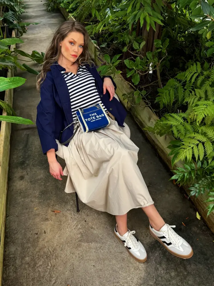 Jakke 3300,- Gant Store // Pique, Gerry Weber 899,- Emil // Skjørt, Carla F 999,- Emil // Veske, Marc Jacobs 3799,- Stil // Sneakers 2000,- Gant Store