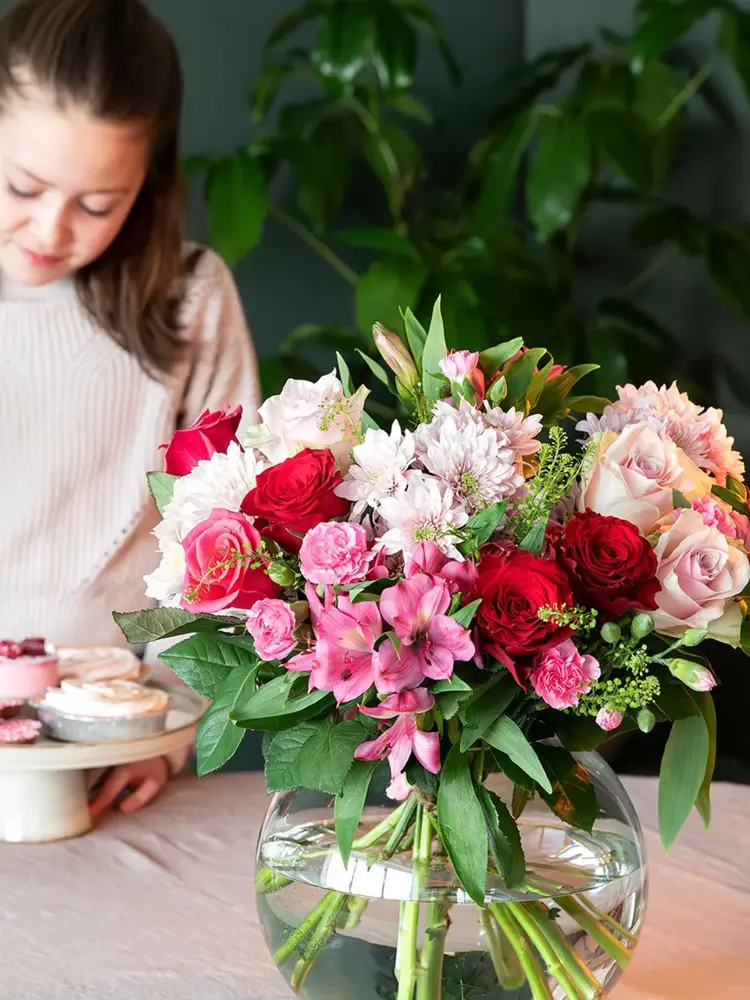Røde roser er det tryggeste og vanligste alternativet. Men du kan også gi en bukett med din utkåredes yndlingsfarge eller favorittblomster dersom hun har dette. Selv en lite romantisk skeptiker setter pris på å få blomster på Valentinsdagen. Møter du ikke din kjære på Valentinsdagen, kan du sanke kjærestepoeng ved å sende blomster på døra. Husk at prikken over i-en er det personlige kortet.
