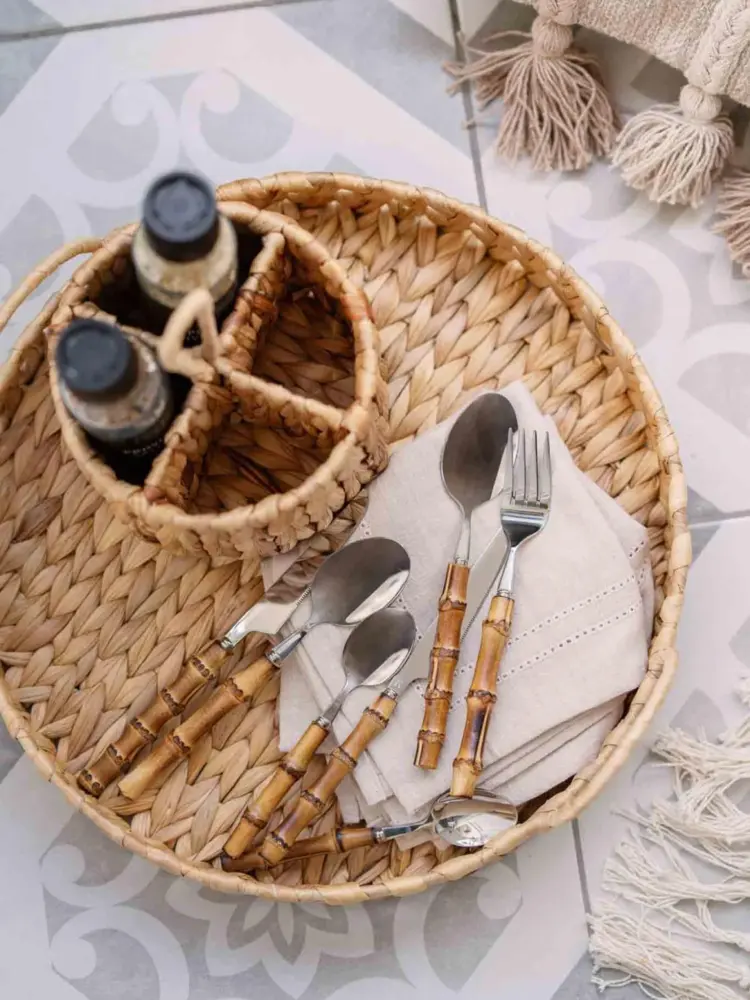 - Bruk kurver til oppbevaring av ved, pledd og puter. Dette bryter opp uttrykket, og gjør i tillegg ryddejobben litt raskere og enklere